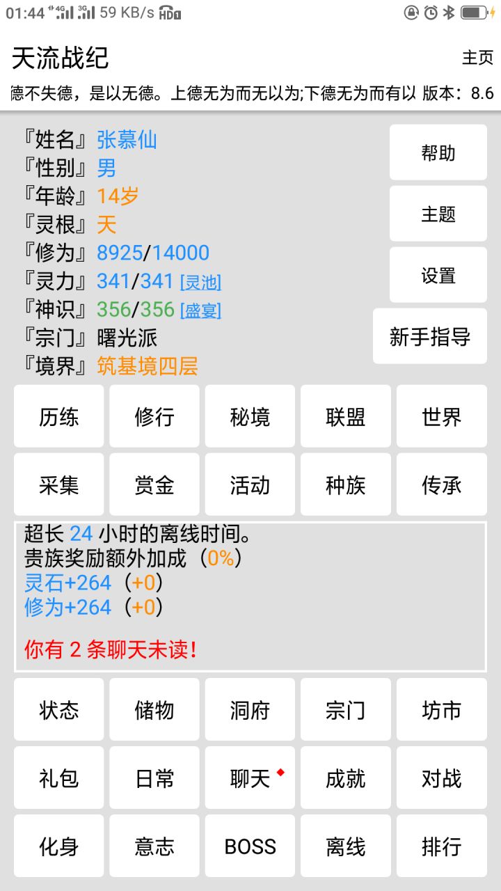 游戏我觉得很有意思,文字类的修仙,每天都能玩一会,慢慢提升战力,希望作者继续开发,继续更新优化,加油!