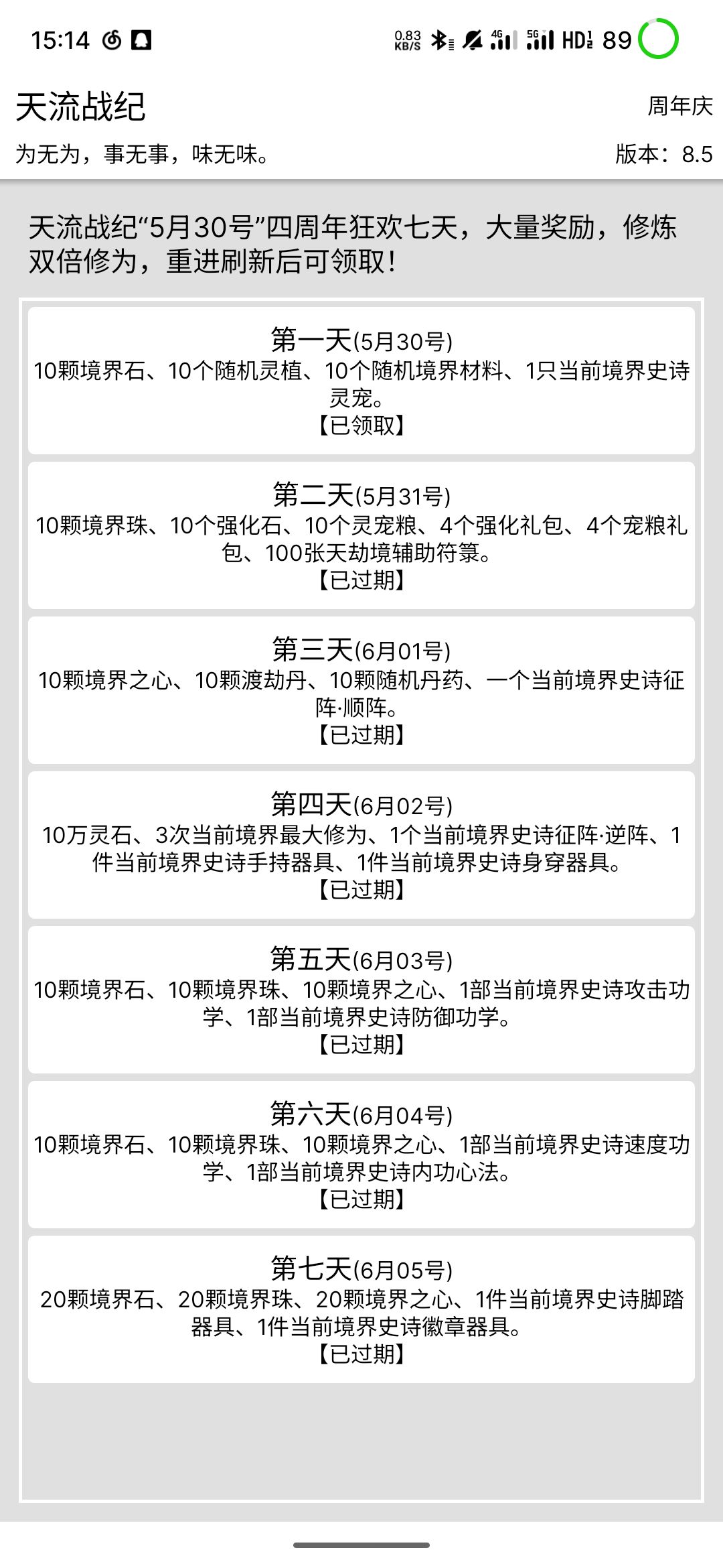 天流战纪“5月30号”四周年活动狂欢七天,大量奖励,修炼双倍修为,每天可领取,记得上线领取。