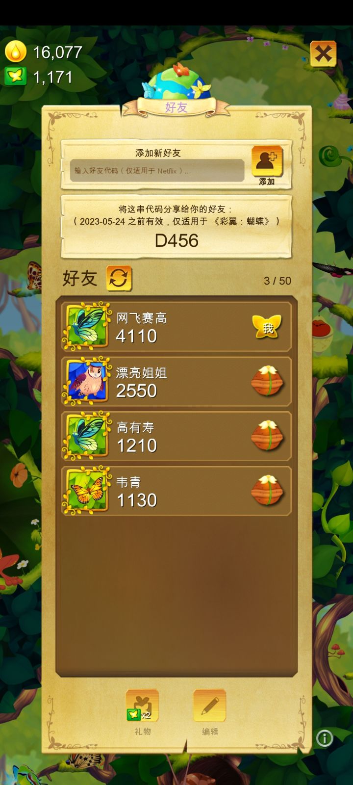 强烈推荐这家公司的最新游戏《彩翼:蝴蝶》没有广告,不用氪金。活动多,资源丰富。花园活动要求低,比原版要轻松。还送蝴蝶币。超级棒!!!好友码 D456