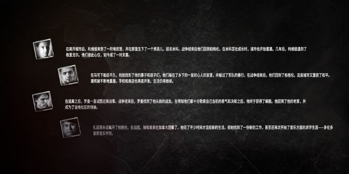 令人震撼。在这里你感受不到所谓的战争的刺激,你能见到的,是在战争的阴影之下苟延残喘的普通百姓。当你感觉在这款游戏中生存很困难时,你不妨想想:这远远不及真正的战争的十分之一!