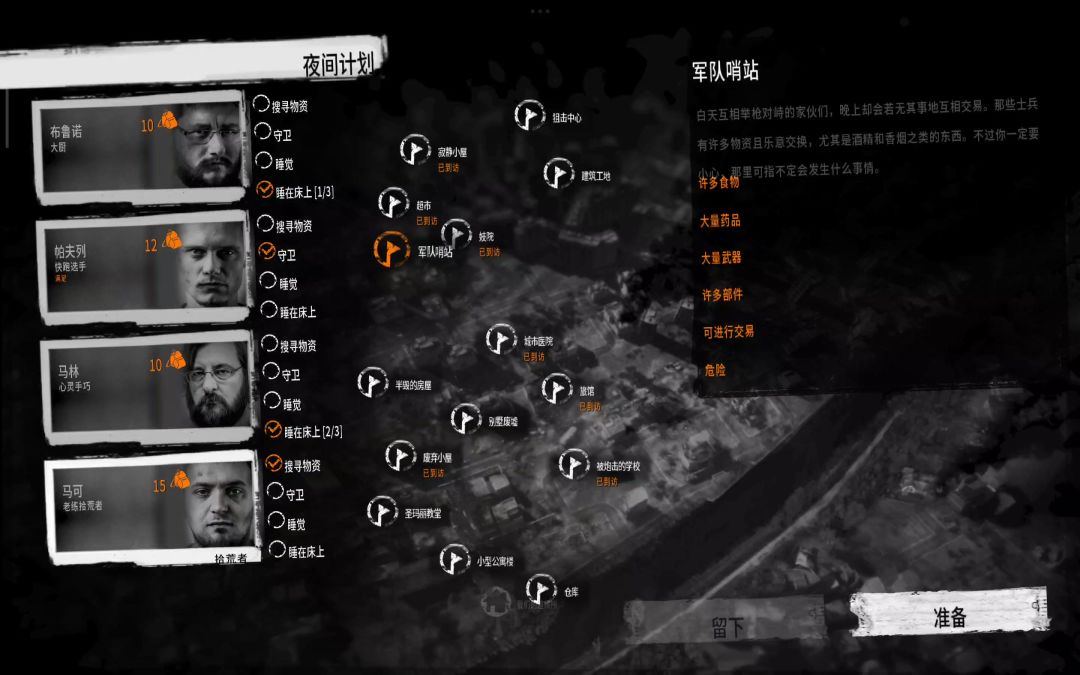 拿到武器之后可以滚雪球,专杀士兵土匪,然后只捡武器子弹食物药品啥的,白天等交易大叔来了才用枪换材料