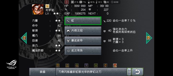 历时五天,全部通关了,一周目打完六大支线加龙之圣域加拉沃斯,二周目打完三个时空扭曲点加最终boss食梦者,三周目见到了最想见的结局梦幻开发组,现在长大了真的很少像小时候认真的玩一款游戏了,这款游戏居然是95年的,小时候我要是有这款游戏我得玩疯,剧情是真的不错,穿梭时空,改变历史,拯救世界,很精彩的冒险,这款游戏共有13种结局哦,还有很多彩蛋,非常推荐没玩过的玩一玩哦。