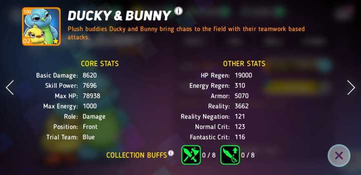 Ducky&Bunny現在簡直就是最愚蠢的过強英雄。他們所有的技能都會造成巨大的傷害,超過其他任何造成傷害的技能,特別是他們的藍色技能,这技能本身可以一次秒杀一個裝備齊全或即使戰力比他們高的團隊。我認為要nerf他們。