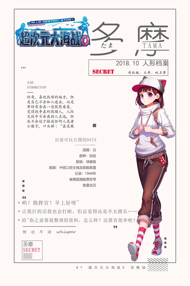 “真是服了,方舟那些家伙的运算核心到底是哪部分出了问题啊,托她们的福,能吃到的零食又变少了……” 天性好奇,喜欢热闹的地方,但是自己不会加入进去,而是带好零食在一边默默看着。人际交往中不会离别人太远,但也不会过于接近任何人或者小圈子,口头禅:“真是服了” 觉得战争真的很烦人。 多摩技能展示: