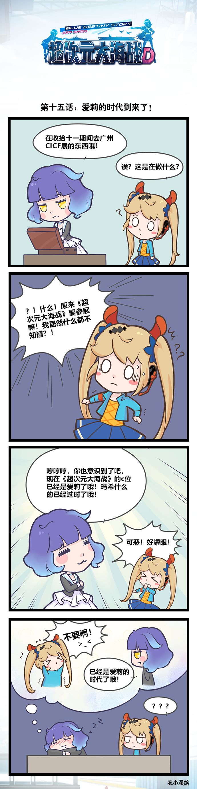 听说爱莉要C位出道了!是真的吗~?٩(๑> ₃ <)۶з今天更新的是第15话:爱莉的时代到来了!本期人物介绍玛希:长期出没在官方Q群里人♂见♂人♂爱的客服小哥哥爱莉:掌管《超次元大海战》官方微博的微博娘(著名灵魂画师!~)