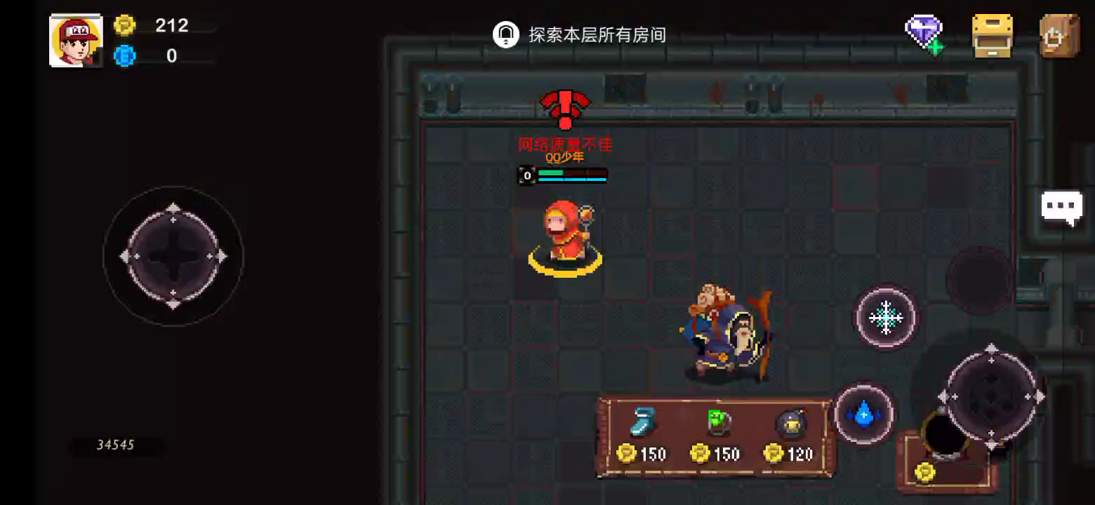 听说游戏很卡,我路由器不服,结果打脸了,第一关进怪物房间就死了,哦,原来是我瞬移到陷阱上,直接摔死,第二关,眼睁睁看着人物撞到怪物攻击上,被秒了,第三关,怪物刷新到我脸上,残血的我被杀,队友可能觉得我太坑,直接送了。 视频为灵魂进下关之后。