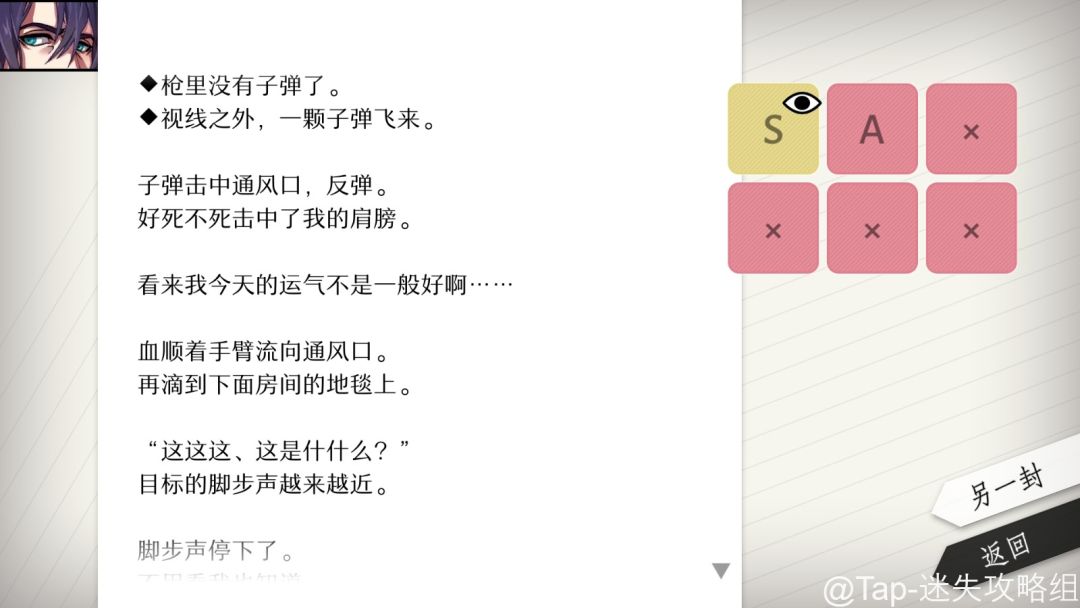 ⚠⚠严重剧透警告!!为了更好的游戏体验,强烈建议大家千万不要在游玩游戏前直接参照攻略,仅希望大家在卡关或者实在通不了的时候参考下攻略,以免损失大家的游戏乐趣~ 🌈攻略作者:卿之 姜白夜是一个具有双重人格的人,在切换成另一个人格之后,他不再是姜白夜,而是勇健。作为姜白夜的另一个人格,勇健与他有着完全不一样的性格和不一样的实力。 姜白夜线攻略 1、臭虫 S级结局:枪里没有子弹了——视线之外。 A级结局