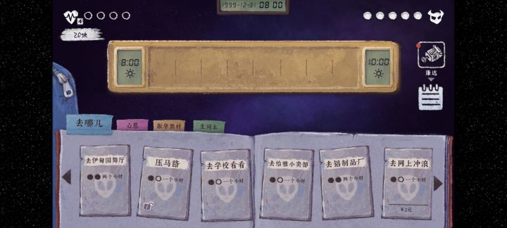 含微量剧透第一次打开《完美的一天》的游戏界面,好像穿梭到了小学的油画棒画本里。作为千禧年后出生的玩家,《完美的一天》像是万花筒里的眼孔,透过这一微小的口子,去观察新世纪更迭之际的花花世界。 游戏设定在1999年12月31日,新世纪前夕。作为主角,“我”陈亮不断重复这最后一天,在时间循环里解锁不同角色的故事。情节设计很有意思的地方在于获得一些特殊道具是需要走过各条线后才了解获取途径,这也要求玩家