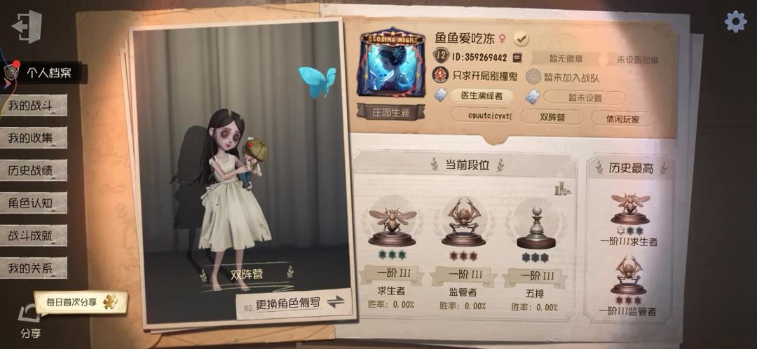 #第五人格共研服 尊敬的第五人格的审核员及其工作人员: 我之所以想申请体验服资格主要是有以下四个方面 : 第一,想提前体验新地图角色,新内容 给游戏官方反馈bug,提供游戏体验感。 第二,我十分热爱第五人格,已经玩1年。排位娱乐都历经上千把。 第三,觉得《第五人格》制作很精美,想提前体验新改动礼包然后好说下这些感受和不足然后改进让玩家有更好的游戏 希望可以加入共研服,谢谢 # #第五人
