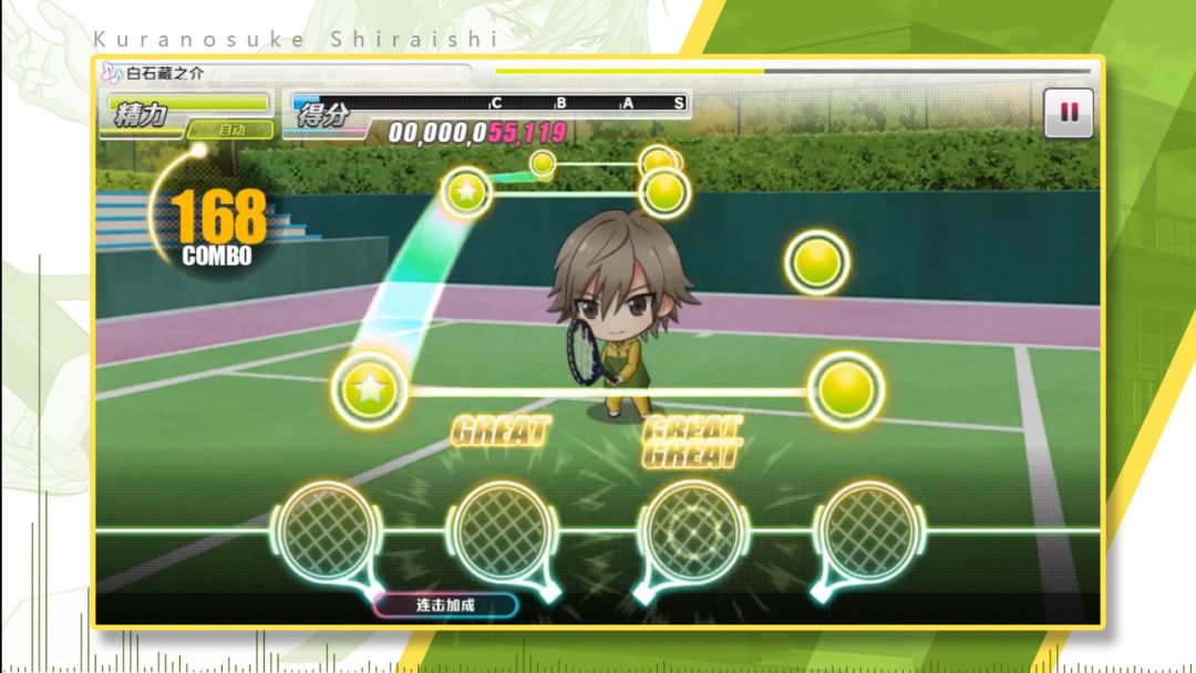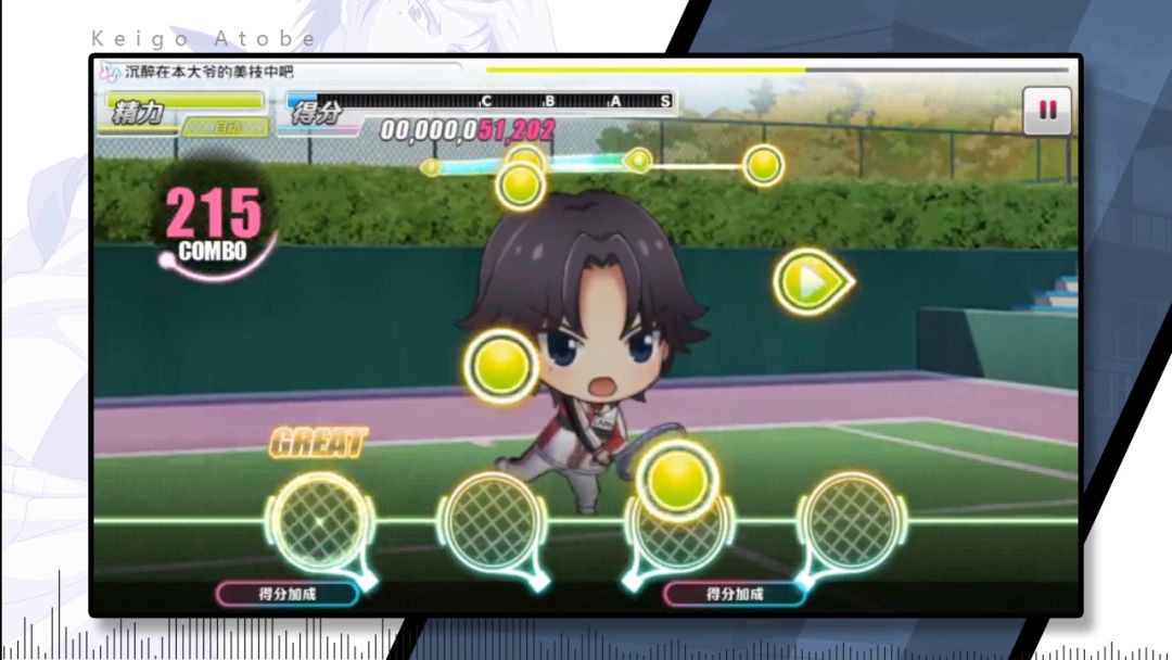 亲爱的米娜桑,今天来到赛场上为大家进行技能展示的是来自大阪的“速度之星”!现在用最快的速度 点开视频查看吧!BGM:《ENJOY》选手:忍足谦也难度:24星(EXPERT)速度:75ps.录屏仅为效果展示,实际情况请以游戏内容为准o ~