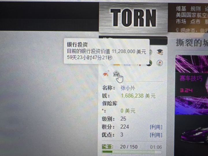 浏览器中的sin-city——网页游戏torn-city基础向攻略一, 游戏类型:web text based RPG game,从文字中可以看出来一些特点:1,这个游戏是基于网页的;2,这个游戏以文字作为主要表现形式(现在有一些图片了,但不多);3,这是一个RPG游戏,我们在游戏中只能操控自己,不能操控其他角色;4,这个游戏是一个大型多人在线游戏,你在游戏中面临的都是活生生的真实玩家。二,