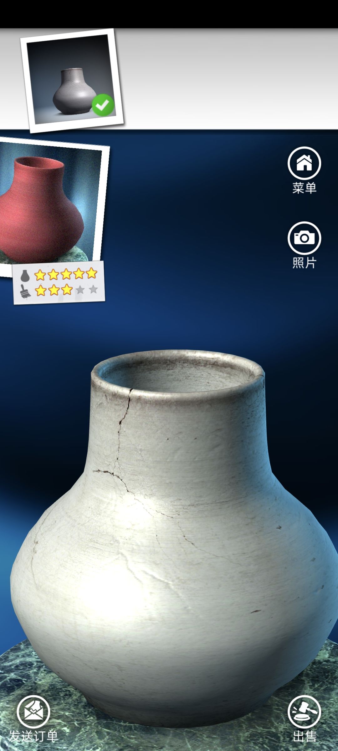 第六封信是个……是个夜盆……咳咳,这个罐子的难度在于颜色,我将逐一分析。 塑形开始就不用拉到那么高了,半高就行 观察图片,发现2区最宽,往下逐渐变窄 将2区拉到最宽,3456区依次过渡~ 最后压低高度,5星轻松拿下~(可能底部我过渡的有点不自然吼,不过没大问题 这个罐子是前期的第一大关,颜色超难,用到的是黑色以及以下颜色~ 小贴士:照片是可以双指放大的XD 仔细看的话,发现罐子有褐色,红色,绿色,