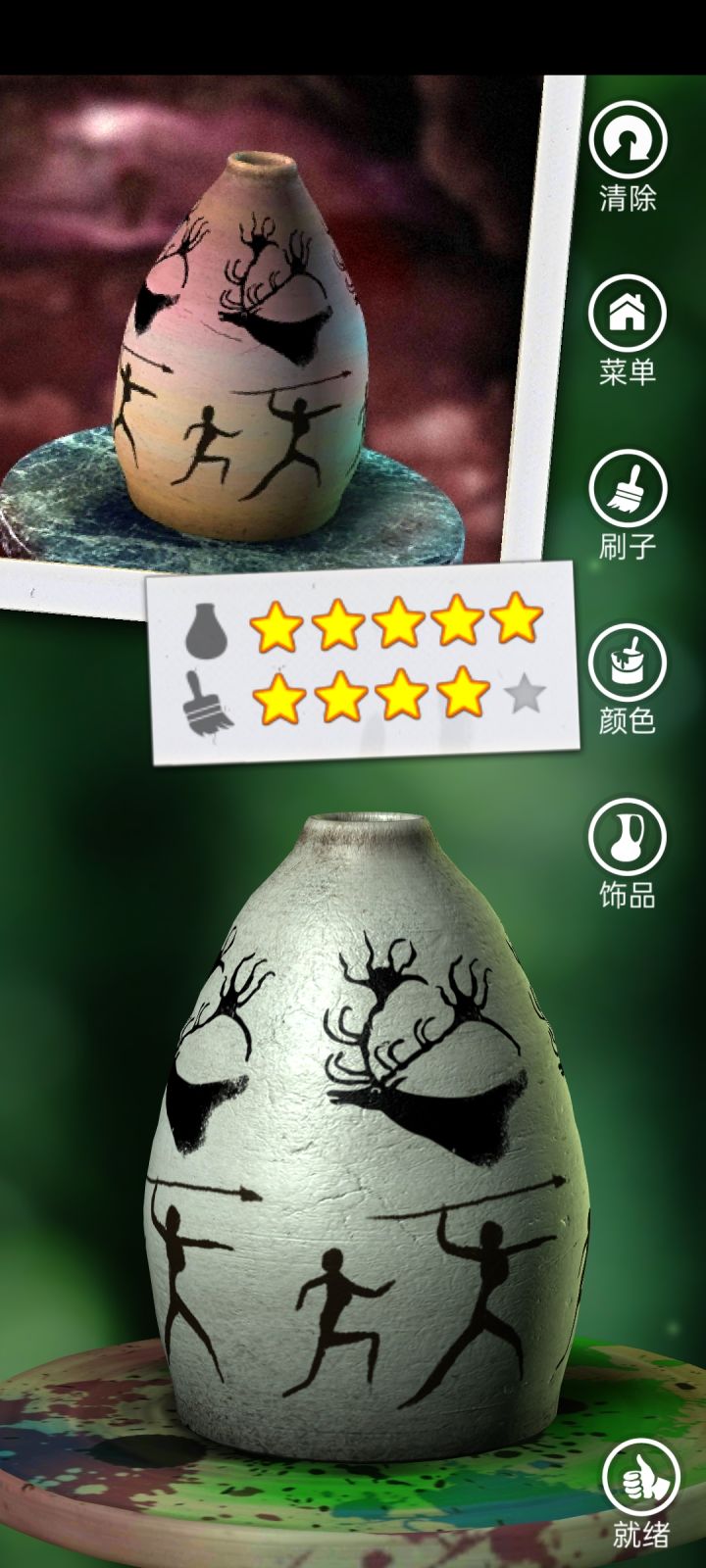 来了来了,他来了,第一个大boss!!这个罐子特别难,形状与刷子都难!!!强烈建议形状摸4星走人,我凹了至少10分钟,看到了摸出来的5星罐子和图片完全不一样的时候我沉默了……让我们进入正题吧(审判眼)这个罐子的形状极其古怪,是个杠铃型,而且上小下大。34区间窄,567区间宽。塑型吧~拓宽567区,稍微收窄13区就可以拿4星,大概调整高度以后建议可以进刷子阶段了我的5星罐子形状是56区为