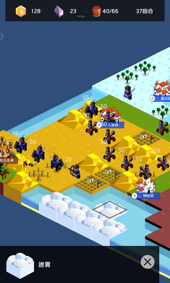 2-城市在有驻兵的情况下很难点击到,建议可以学英雄无敌,加个城市切换的UI,或者简单粗暴的将城市模型稍微放大些。