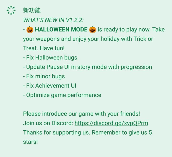 建议不要更新至1.2.3版本,虽然修复了一些bug,但活动难度系数增大了很多——初始血量不是220而是100,初始攻击降低,石盾兵正面有减伤buff(和普通关卡一致)等等。肝活动是枯燥乏味的,1.2.3大改都快没动力了。新活动玩法,花费1张ticket,选择两个武器中途在此界面可切换武器,右下角是boss,站撸即可,有广告复活(我复活了两次)三个buff自左往右分别是,加攻击,加血限(100