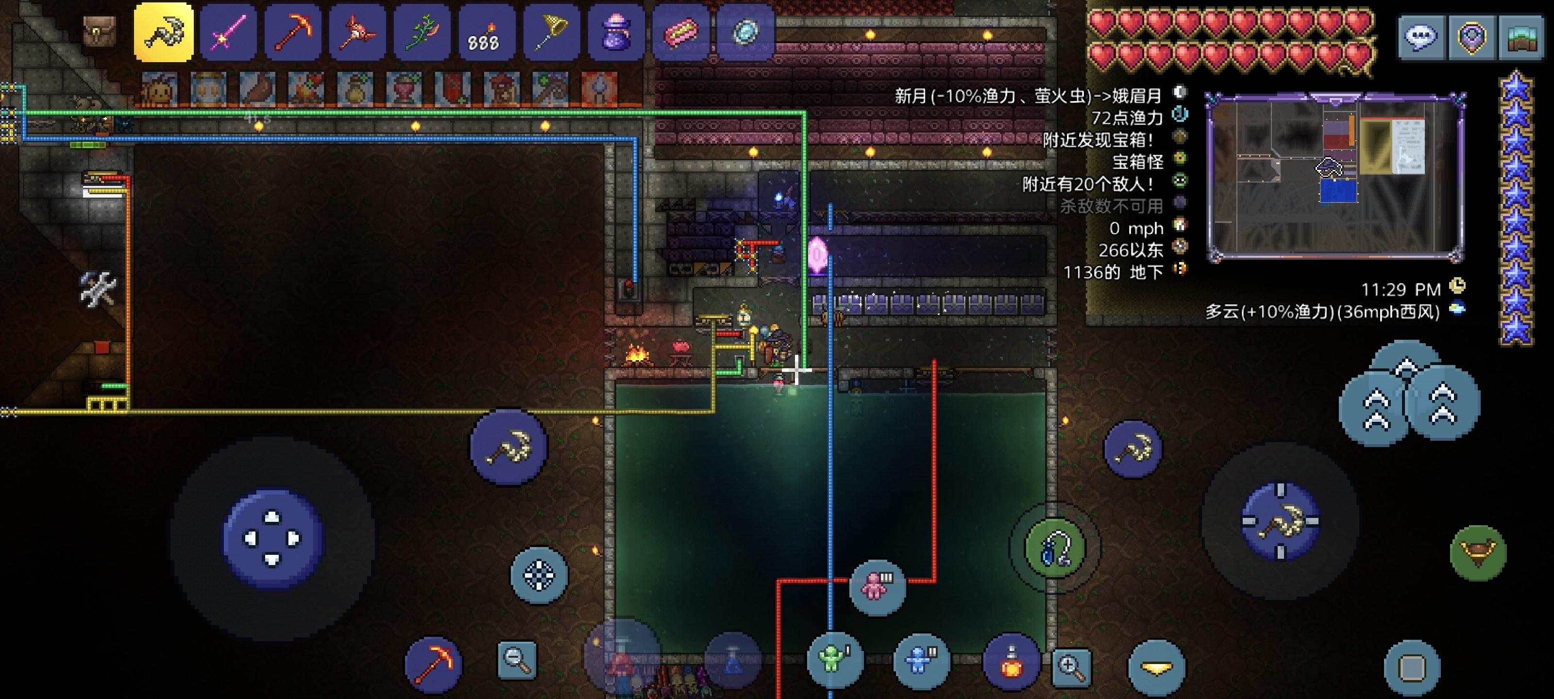 没想到真用冰雪刃刮死了克眼🤣本来是和室友联机,所以弄了大地图大师模式,刚开始过于艰难,两边都隔着腐化,我也是运气烂得不行了,之后室友不玩了,我一个几颗心死了几十次,终于探完地图建好了传送晶塔,现在发展也是缓慢😭就等哥布林入侵让哥布林工匠来,我合个马掌气球,再附点守护…