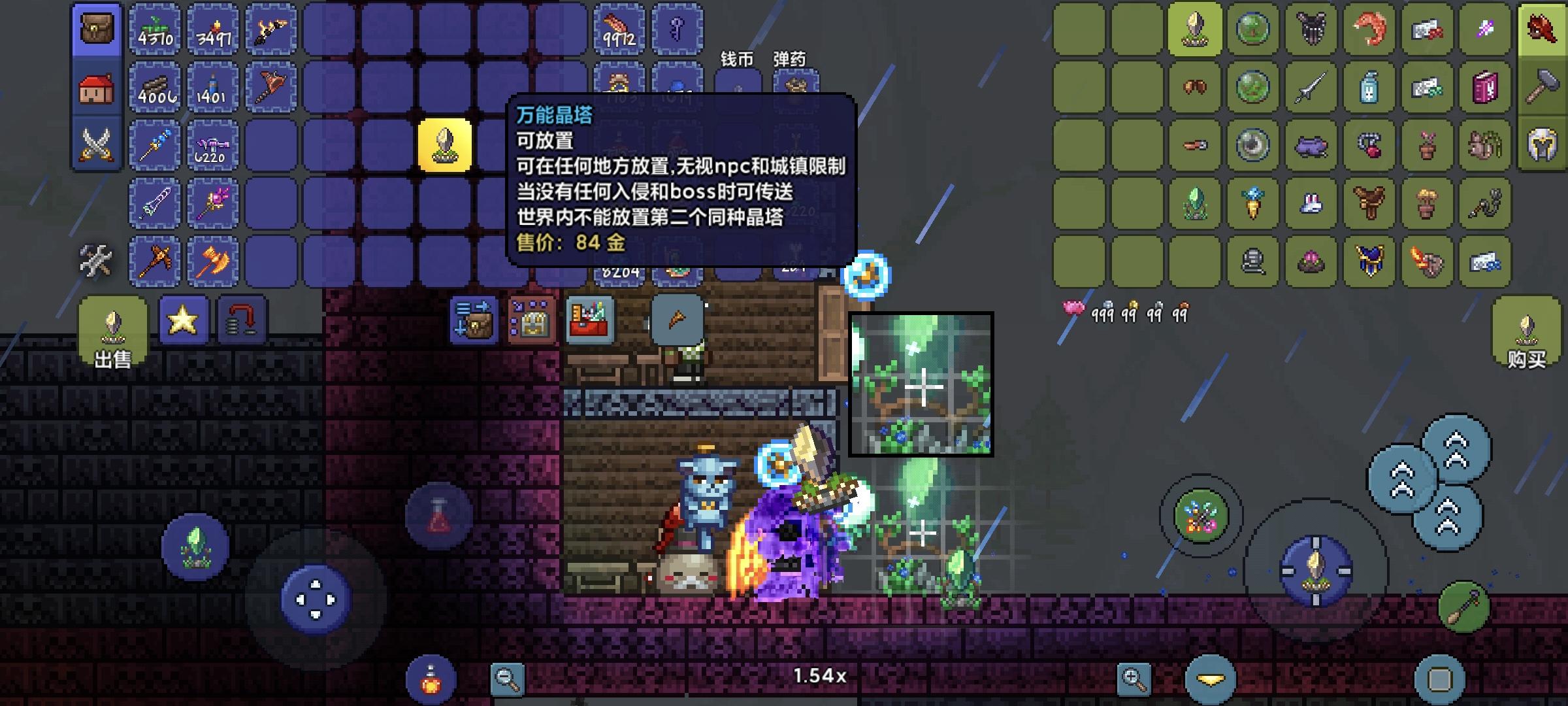 没想到真用冰雪刃刮死了克眼🤣本来是和室友联机,所以弄了大地图大师模式,刚开始过于艰难,两边都隔着腐化,我也是运气烂得不行了,之后室友不玩了,我一个几颗心死了几十次,终于探完地图建好了传送晶塔,现在发展也是缓慢😭就等哥布林入侵让哥布林工匠来,我合个马掌气球,再附点守护…