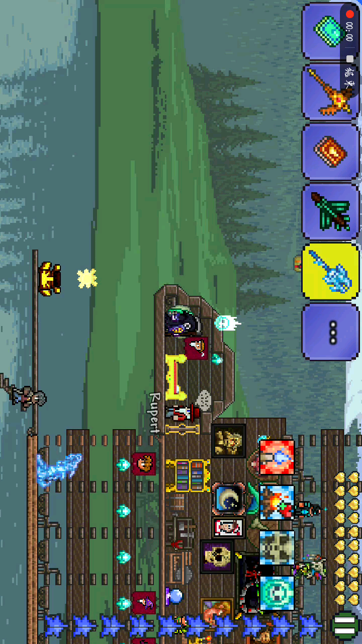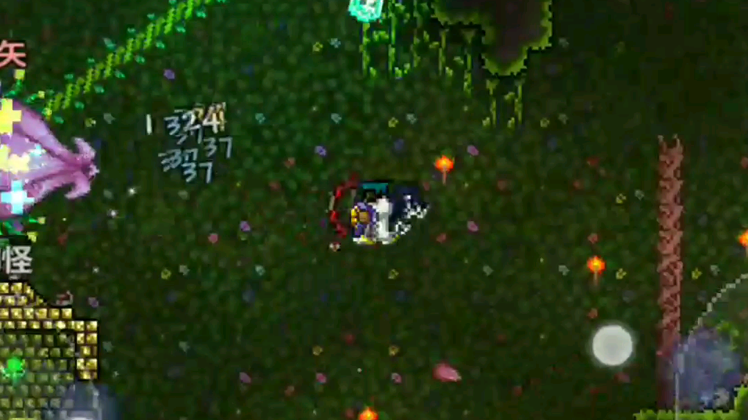 钛金套, 沙兰加之弓,(狱岩锭) 情人节戒指,(情人节商人出售,丢出去捡回来就有效果了) 十字项链(模仿者掉落), 任意跑鞋,(赫尔莫兹+火箭靴) 盾,(钴蓝盾) 翅膀, 饰品尽量全附魔守护 (素材随手打的就懒得附魔了) 视频卡是录屏的锅