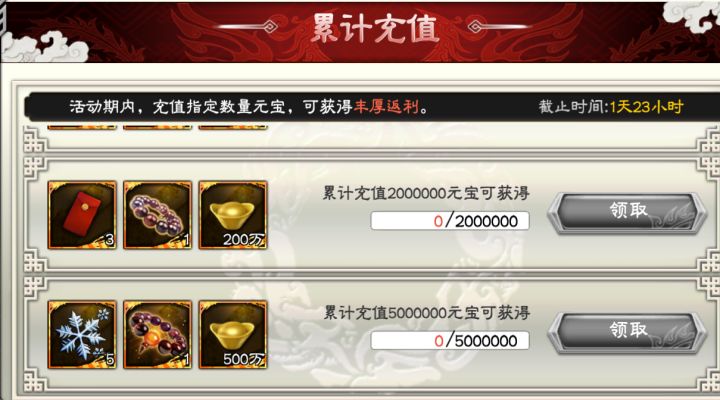 龙年行大运,三国陪你闹新春!龙腾新岁!恭贺新年~,三国志大战先给各位主公拜个早年!本次新春活动也将陆续开启,具体内容如下:活动一:龙年新气象,新春充值豪礼,元宝双倍返还!活动时间:2.09-2.17活动范围:全服活动内容:活动期间,完成累积充值可获得稀有武将开眼道具念珠以及虚空不然,同时更有双倍元宝返还 活动二:新年新气象,每日登陆领取新春大红包,更有66666元宝大奖等您领取!活动时