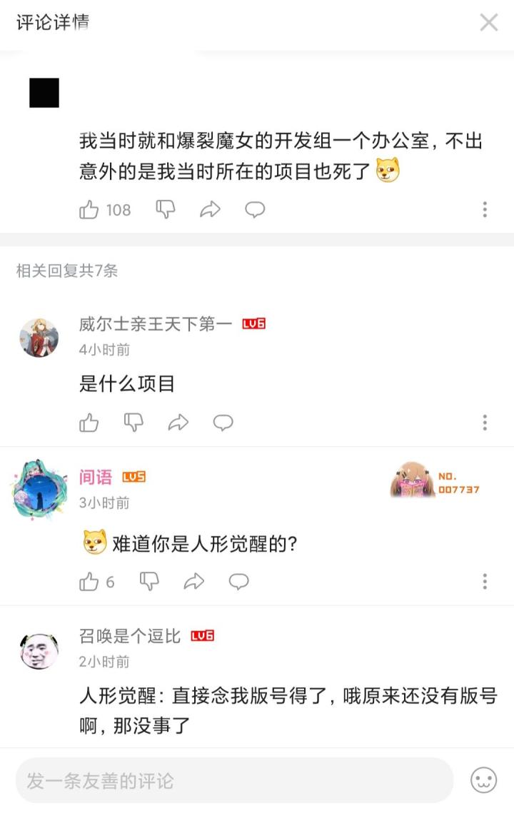 说实话我第一眼看到这条消息时,我的内心是绝望的,好像存在于某处的坚定但脆弱的东西一下子塌掉,碎了一地。我长久地宣称人形绝对会在今年开服,其实没有任何现实意义上的依据,只是按我自己所乐意看到的未来相信着。正因为此,这极富现实主义色彩的消息,恰好是对我的极大讽刺。我的信心崩塌了,但好在崩塌只是暂时的,隔了大约一天,现在我重新建立起这种信心来,虽然过程极其痛苦以至于我都产生不了回忆的念头,不过终究是出离了那充斥着痛苦的大漩涡。常有同志说我对人形真爱,我对此存疑,因为还有几位同仁(见下图)比我更加坚定。我必须承认,他们更值得你们学习。总之我会继续等,直到最后;同时,我也知道,支持我和其他特尉的人也会坚持下去。