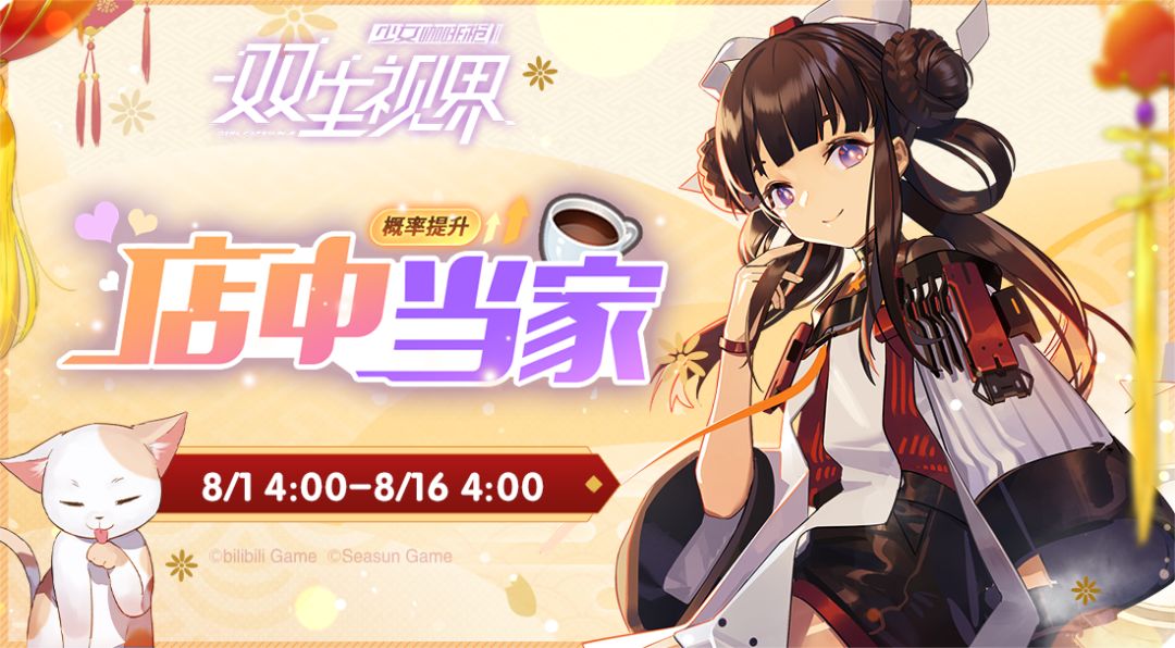 活动时间:2021年8月1日04:00——2021年8月16日 04:00 活动规则:本次【店中当家】补给活动期间,4星「机动套装·聂诗柔」、4星「圣诞·时无忧」、3星「私服·朱诺」概率UP。其中,4星少女的合计获取概率将提升至1.5%,达到活动卡池4星卡获取概率的50%。 轮替补给说明: ◆【店中当家】轮替补给的角色卡范围将与同期【女仆咖啡馆】的角色卡范围保持同步。 ◆在当期【店中当家】轮替补给