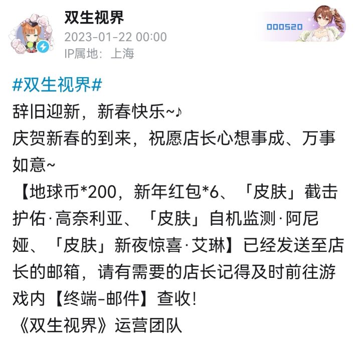 双生停更差不多一年了,不知道双生何时在回归。今天也是千姬的生日,祝千姬生日快乐(今天本想抽千姬的生日卡池的,结果没有,有点失望)#千姬#双生视界#生日快乐