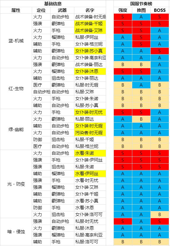 原资料来自WIKI,作者是风華殘雪,我整理成了文字版本,方便大家查看。(顺便说下,转载请注明出处,毕竟也是辛苦整理了下),有些角色卡目前未出,但是很快就会出来了,因此先留着占坑11月22日更新1、女仆装-沐恩角色强度从S降为A,因为伤害偏低,后期练度上去了,还是可以升到S的2、女仆装·朱诺推图强度从B升为A,因为大招针对群体怪,效果还是比较好的3、水着·朱诺各项强度从S降为A,因为打单体b