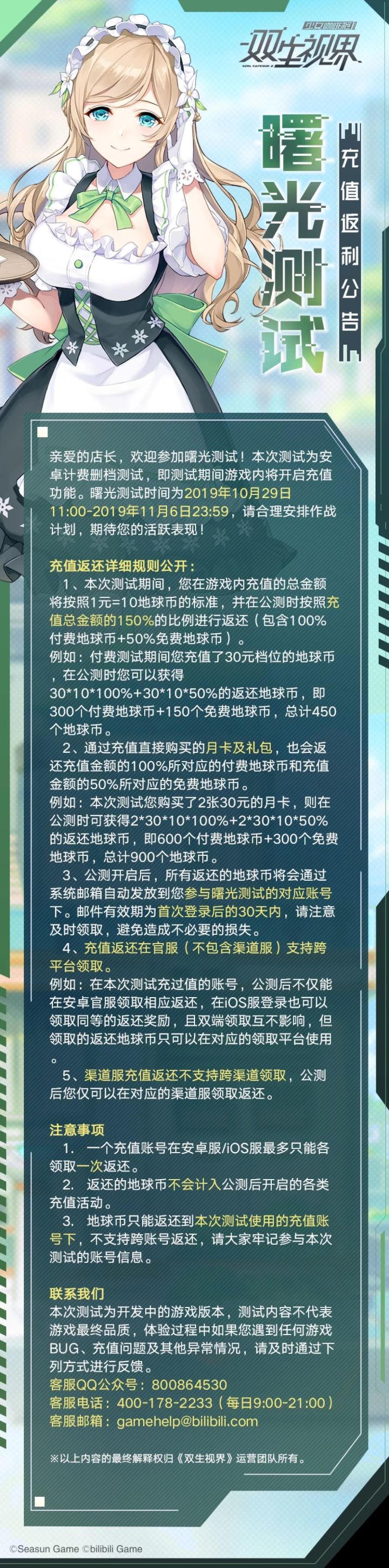 致尊敬的指挥官,收到前方战报,将向所有指挥官发出重要通知!曙光作战行动即将展开!以下为本次重要情报↓↓↓测试时间:2019年10月29日11:00~11月6日23:59测试类型:安卓端计费删档测试测试规模:不限号08小队已集结完毕,等候店长的到来!※计费删档测试,指的是本次测试将开放充值功能,但测试结束后将清除所有玩家数据。※在本次测试之中充值的金额,将在公测后按一定比例返还至您的