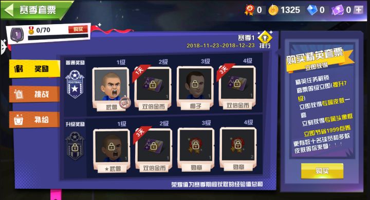 赛季套票是热血十一人最新更新的版本中加入的一个玩法。赛季套票包括免费版和精英班,所有的玩家都可以直接免费领取到赛季套票免费版本,精英版则需要付费获得,当然玩家可以选择不升级精英版,一样可以领取到丰富的奖励。赛季套票中包括挑战任务,排行榜,补给箱,套票奖励几个模块。【套票奖励&套票升级】玩家可以在赛季套票任意时间通过购买精英版套票升级成精英版套票,精英版套票相比普通套票多了精英版套票才可以领取的