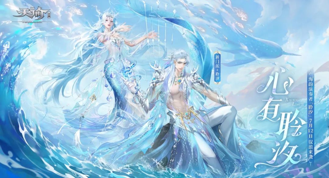 海韵演奏者「聆汐」7月12日驭浪来袭!海量更新内容,极致视听体验,尽在「心有聆汐」海洋主题资料片! 前日小谕逛到苏澜湾,听到一位说书人正绘声绘色地说着聆汐一族的传说。 传说中,天下万物都随着潮汐从水中诞生。为守护海洋生命的安宁,美丽强大的海洋女神将自己的神识打散为纯粹的力量寄存于海洋中。从此,只要潮汐还在,海洋女神的神识就不会消灭。 汐族传承女神意志,信仰和敬畏着海洋女神,每年海神祭典仪式前都会选