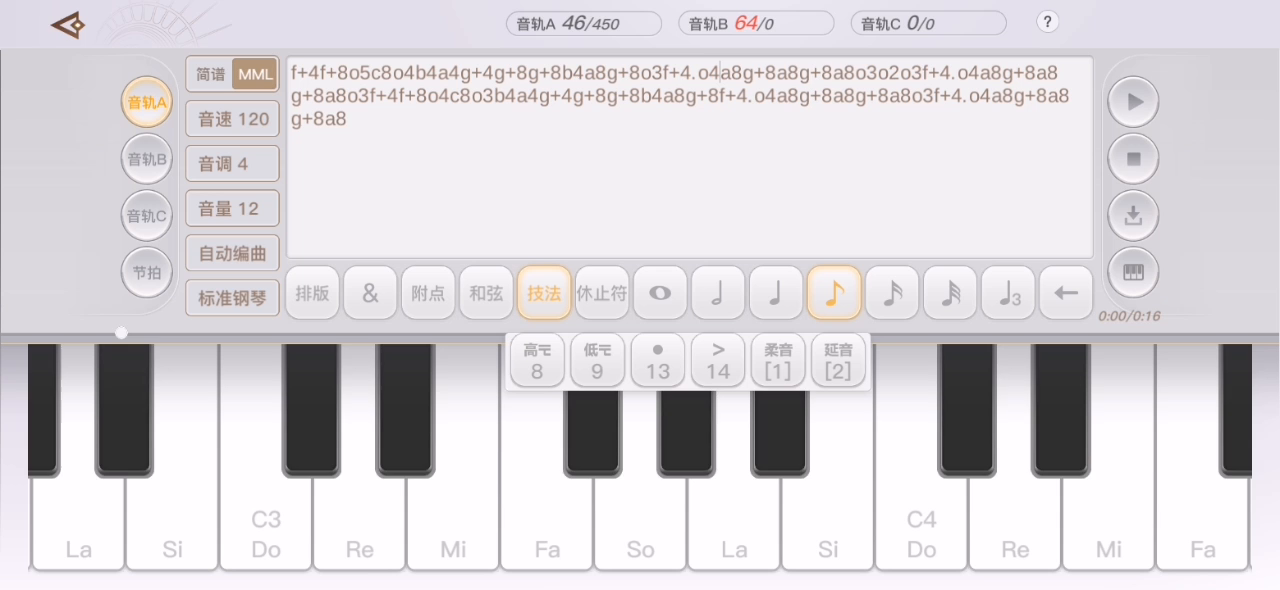 编曲的时候音轨A没问题450音符,但是B C音轨没给我一个音轨空间,我要哭了。