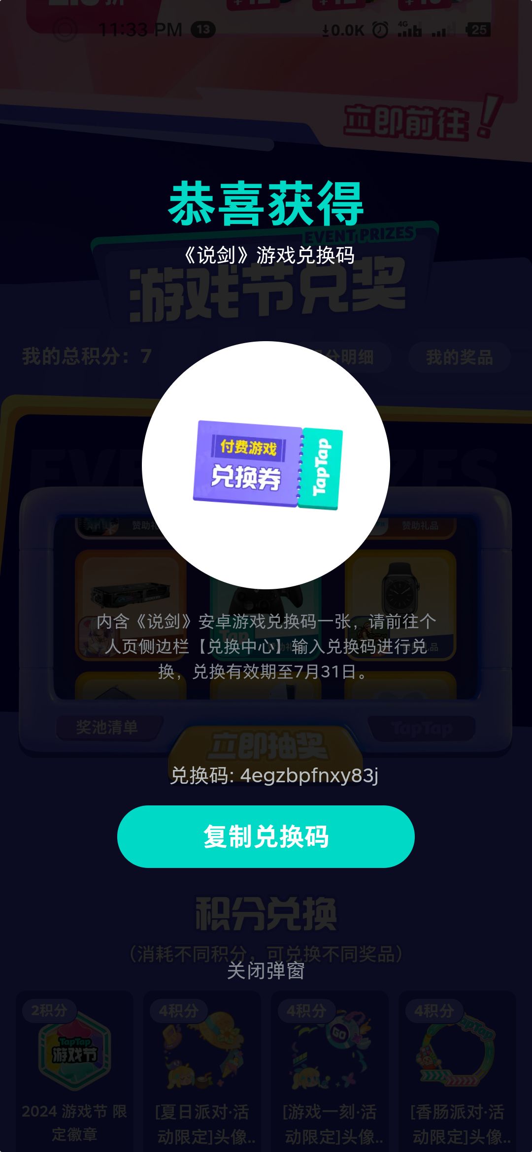 游戏已买分享个兑换码