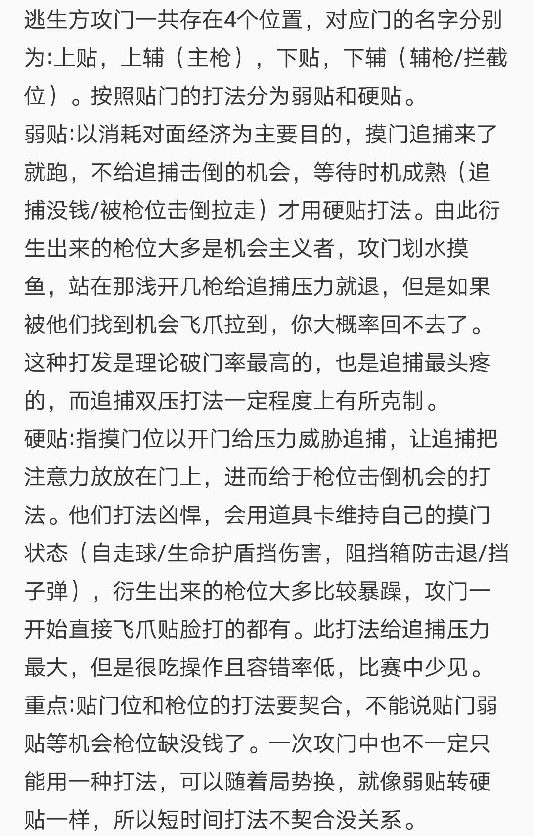 新41追捕获胜条件是4抓对面或者拖到8分钟 追捕方只能通过支援(开局0~1min:65金币/10s 1~2min:80金币/10s. 2~3min:105金币/10s. 3~8min:125金币/10s),击倒逃生,监禁逃生(25金币/5s)逃生门开启获得金币,值得注意的是,逃生门被激活支援300金币,追捕自救和锁被开启不能获得金币。 从逃生门到禁闭室有一条传送通道(以下简称”通道”),追捕传送开