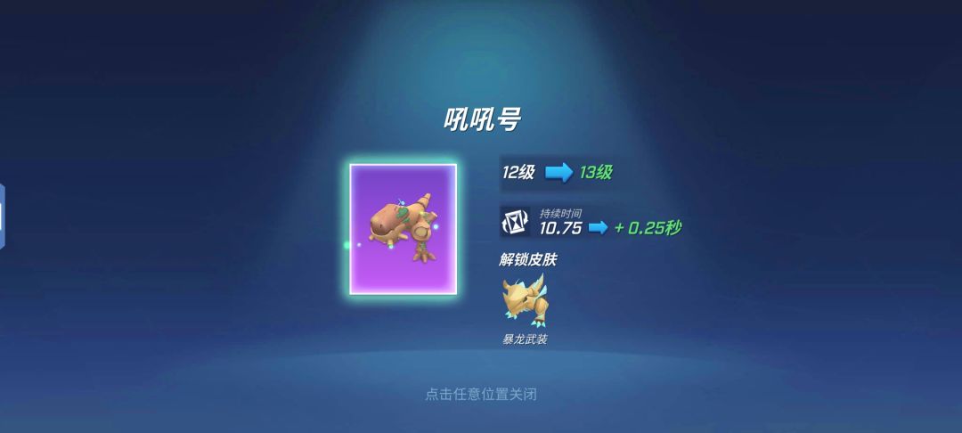 吼吼号解析 品质:史诗冷却时间:8秒造成的伤害:45(可以多次攻击一共可以造成135的伤害)攻击后眩晕的时间:1秒(比较短不过可以多次攻击) 消耗金币:130护盾值:80 解锁段位:黄金介绍:变身为吼吼号,不仅能够保护背上的队友不受伤害,还可以主动向前方发出电磁脉冲眩晕敌人。变身时间还可以随着吼吼号升级而提升。 收集方法 首先为大家介绍一下吼吼号这个道具的收集方法。这款道具卡的收集并不算容易,毕竟