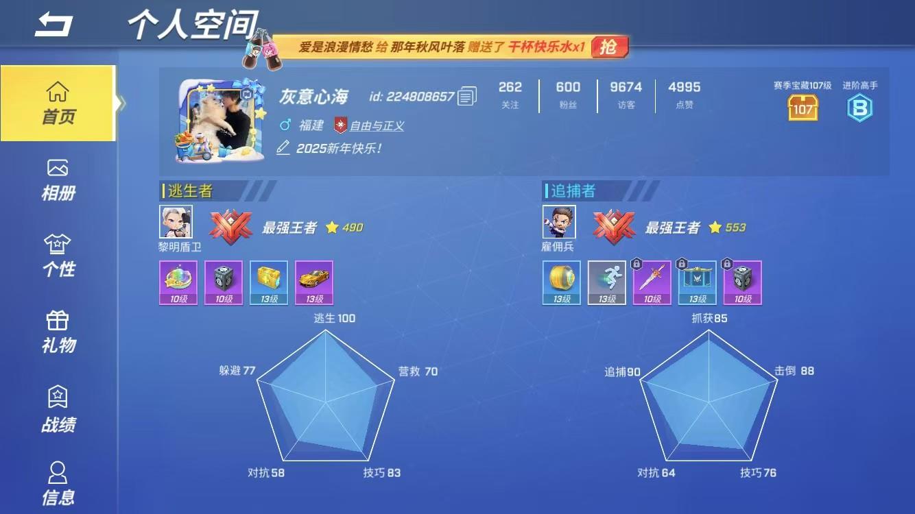 2025既将结束 做个总结吧!逃生今年上了300星 追捕上了173星 另外 祝各位少年冬至快乐 马年顺顺利利