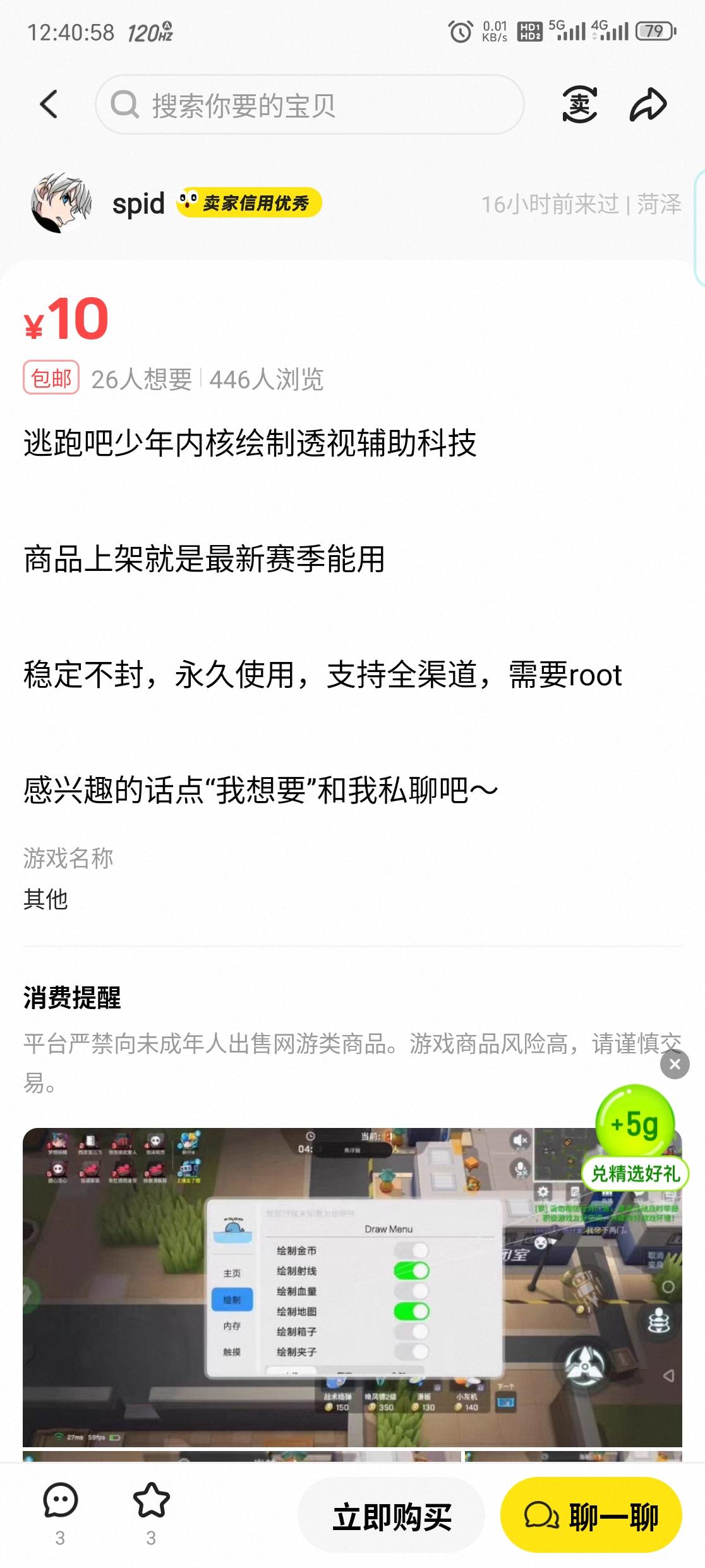 某鱼上面,光明正大卖科技 (只截了部分图,还有很多)1、游戏处理外挂都是件吃力没利益的事,所以很难,也不可能完全封尽!2、难道真如他们所说防封?我不清楚,但应该是能临时绕过检测。个人建议:官方可以自己买几个外挂回来测试,进行破解。毕竟外挂也在不断更新!3、外挂严重影响游戏环境,基本上经常玩的不可能没遇过,希望官方的10年大礼包莫手软!正常玩家最无奈,毫无游戏体验