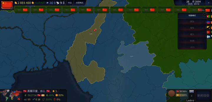 在安心建设新中国的日子里,突然发现列强排行榜成了第二位,是谁敢跟新中国争锋,让我看看,哇,这bug印度这么能生???能和谈一座城不是发大了,我大中国最多省人口才5w5,5级农场,商品30%,印度这是。。。
