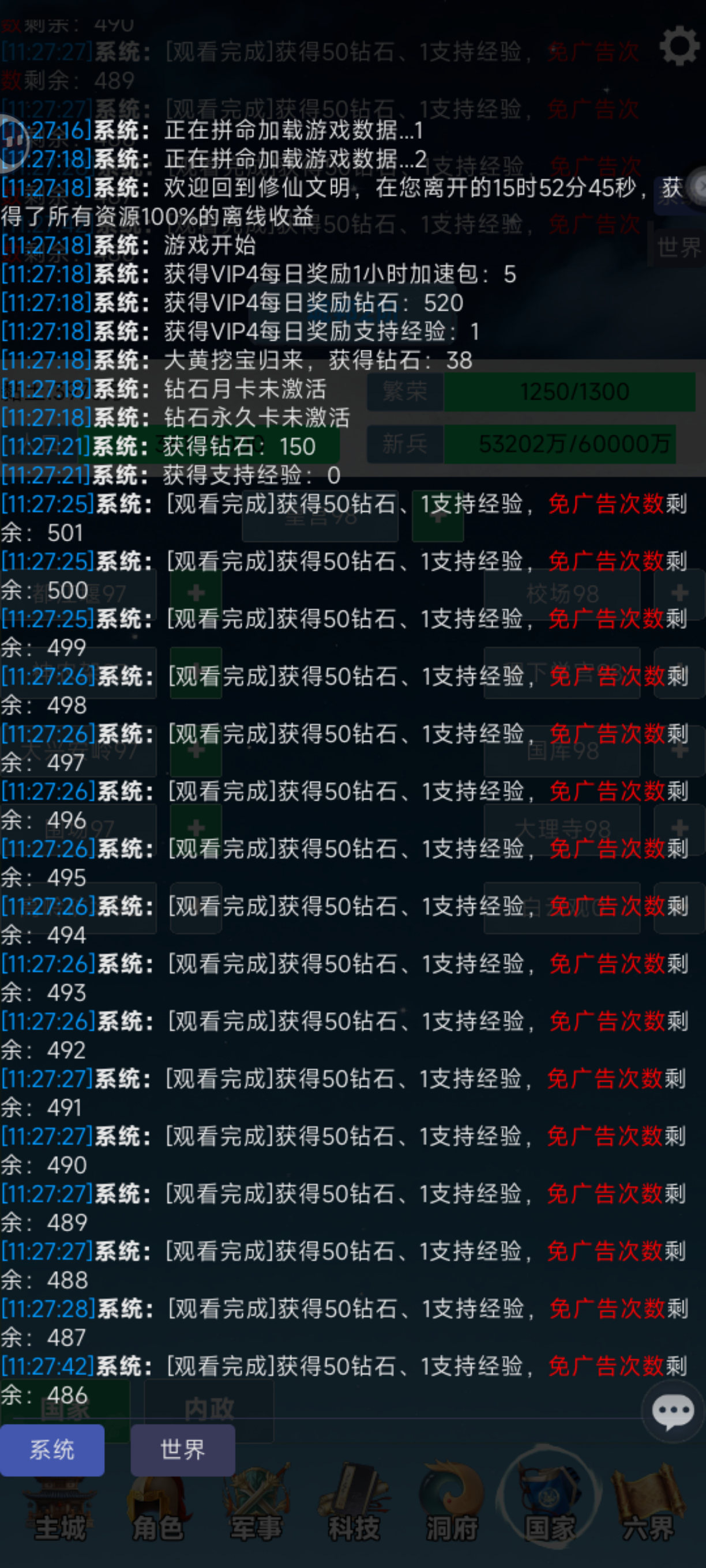 建立国家,升级皇宫,发布内政,开疆拓土,基础资源从此稳定了。