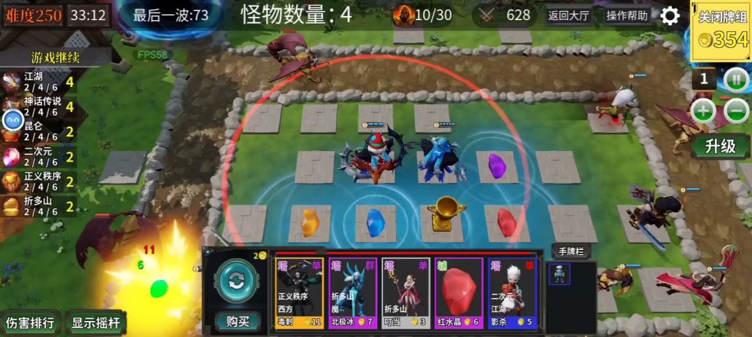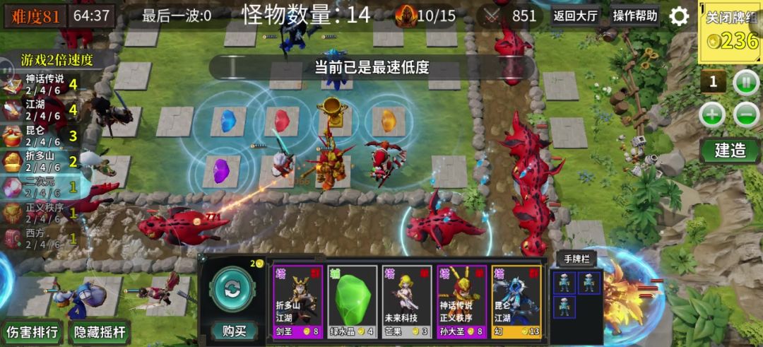 1:幻没感觉多厉害可能还不太会玩 2:这游戏控怪很重要 蔚来,人马,杨戬,寒冰,眩晕,萧破天这些合理摆放,前面那些可以放在一起然后让萧破天把漏掉的拉回来,蔚来可以聚怪所以尽量提升人马嘲讽但是数量有限杨戬可以击飞还便宜挺好用的寒冰减速范围眩晕单体但是后面可以一直晕,聚怪后用关羽雷震子剑圣这些一起输出 3:宝石很重要紫色黄色一定要买能多高就多高加暴击加攻速,圣杯加金币也必须买,感觉孙悟空就是用来补刀的