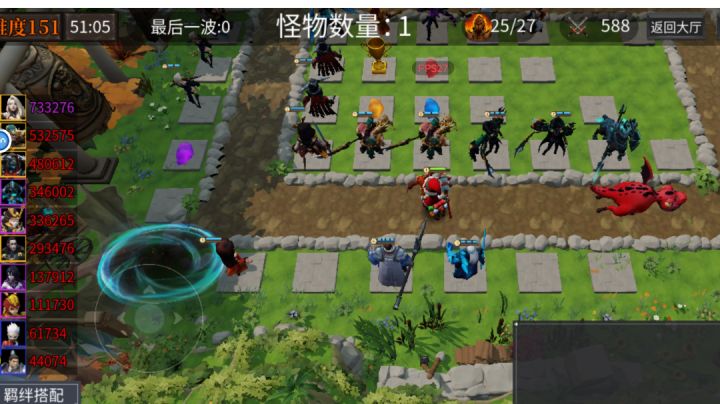 还是两个幻,两个c 可以是同一个c但是升级没法双击麻烦,所以用两个不一样的,紫激光一样用,层数不高,就是为了省事省的升一堆塔,除了幻别的都是一个双击升级就行,边上随便扔些凑羁绊,金币多的最后都没用,前期发展的时候留2个wait小人以防暴毙,凑上一堆金币怪早用wait 前期安稳度过了后面随便3倍速过。摆位啥的能加到随便摆就行。300不给看,前面太随意结果嗝屁了前面主c啥的等级不急,钱优先找幻和金币怪