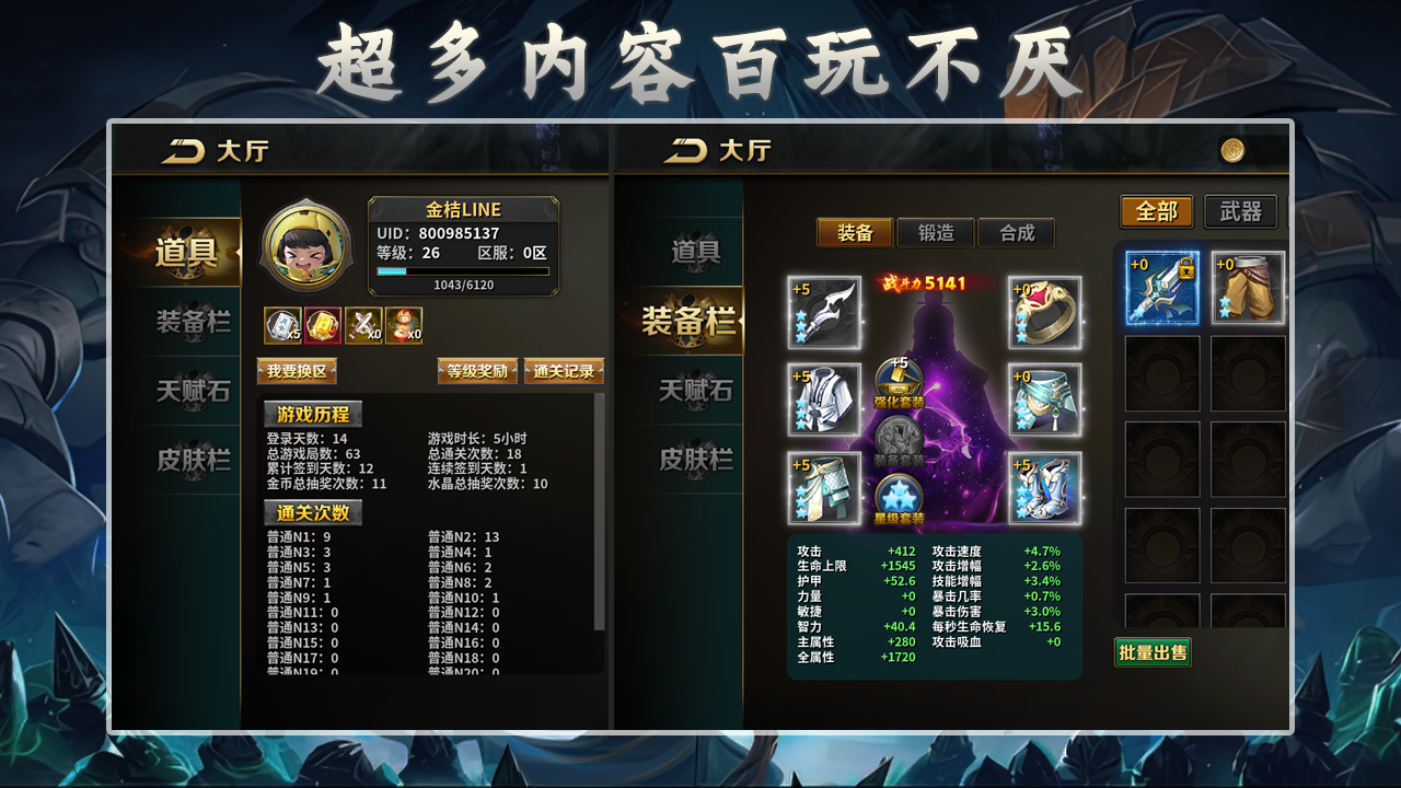 以上装备出完就可以一直升级摇钱树,摇钱树升满级了再陆续升级手里的装备,手里的装备需要先升级高等级的这样就不会自动合成低等级装备了,弓箭和戒指陆续升级到lv5,6,7就可以一直刷到最BOSS快出现,把装备换成弓箭lv3,lv4,lv5