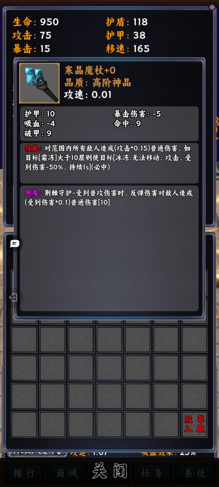 游戏里有着多种效果不一的草药(具体效果游戏内点击草药查看)〖炼药〗每次刷完一波怪都会炼化 [炼药格] 内的草药(炼化格子可提升)炼化后会触发对应的草药效果(如:回血草会回复生命)玩家将草药拖动到 [炼药格子] 即可生效#游戏资讯 #游戏种草计划 #游戏推荐 #攻略 #游戏安利