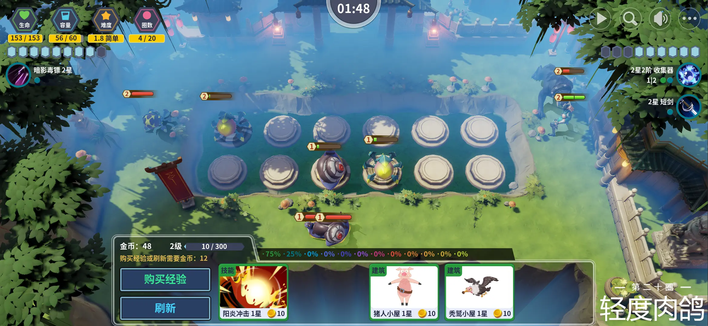 建筑产出金币,金币培养英雄。敌人随时间成长而成长,当英雄成长高于敌人成长时,即可跑满二十圈,通关游戏。