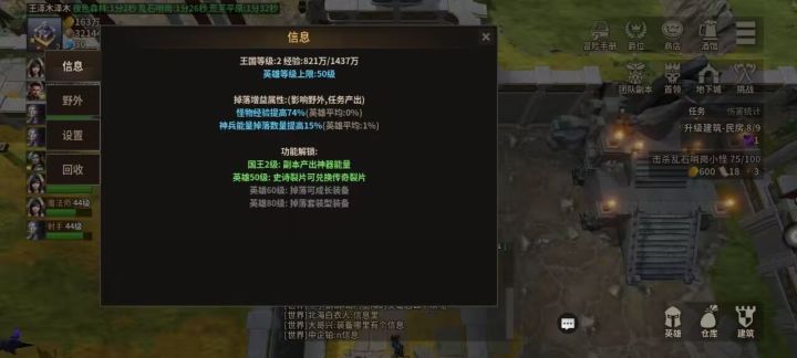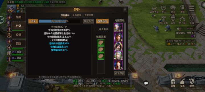 大佬不用看。随着时间发展大家也都陆续来到了国王三,等级50+,这个时候升级经验变得越来越多,那我我们怎么能有效的提高经验获取,首先低氪跟零氪党本就先天不足的情况下,就不要去追求地图品质了,首要是把效率提高,那我我们就可以买商店里的低级地图宝箱50000金币那个,刷白绿加16经验百分比的,跟普通怪物数量的。那样我们就可以速度刷完图123。阵容搭配3奶妈一图一个,3射手一图一个,图2图3各配一个护卫,