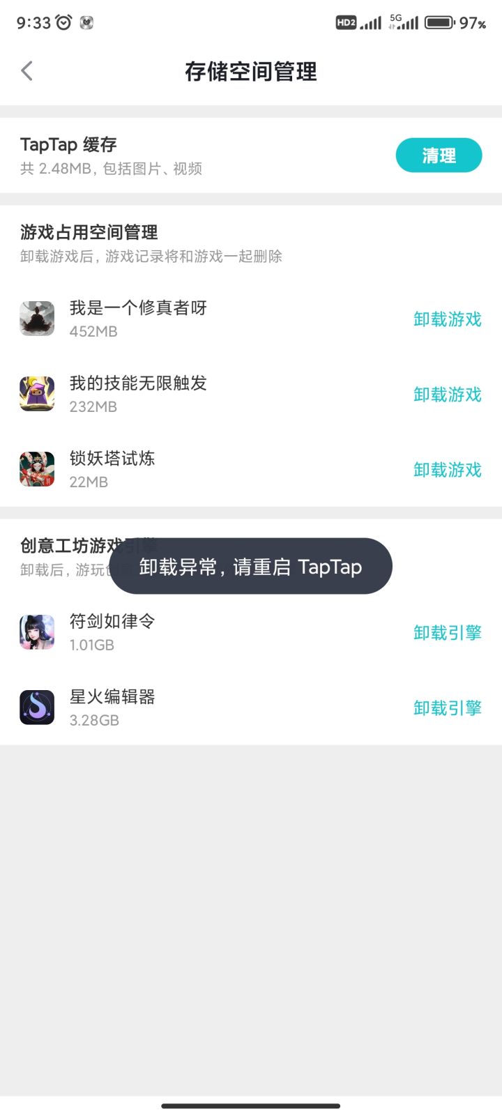 卸不了,tap就这么审核游戏的?意思需要把tap卸载了是吧!