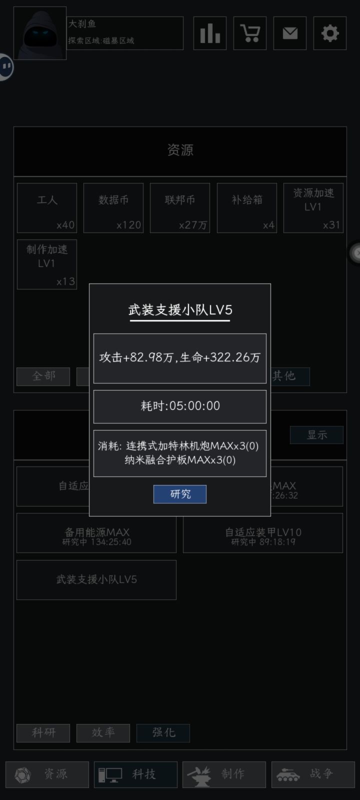 武装支援小队需求
