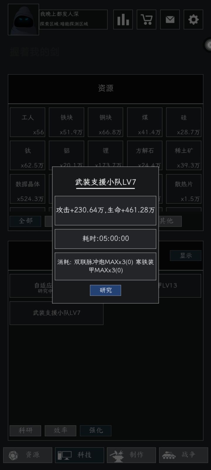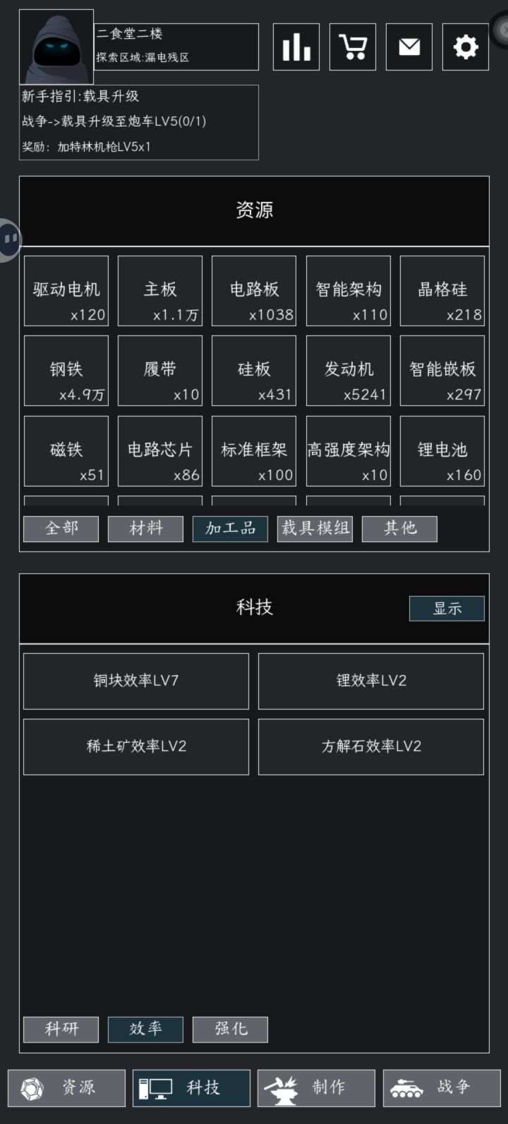 1.进游戏后先点左上头像输入激活码:加群福利,05xhbgc。2.跟着任务走,不要做手枪,先做出铜线圈后直接做步枪5级只要81个铜线圈(1个铜线圈只要1铁2铜,手枪1把要5铜)不要做铁甲任务已经做了,做钢甲(钢甲跟铁甲要的铁一样多)资源不够直接上资源卡。3.步枪做完后,先不做钢甲,先开空间1,优先级最高为了后面打人口用。步枪要2空间,你不升级那5级钢甲带不上去打不了关卡和深渊(爆工人)4.重