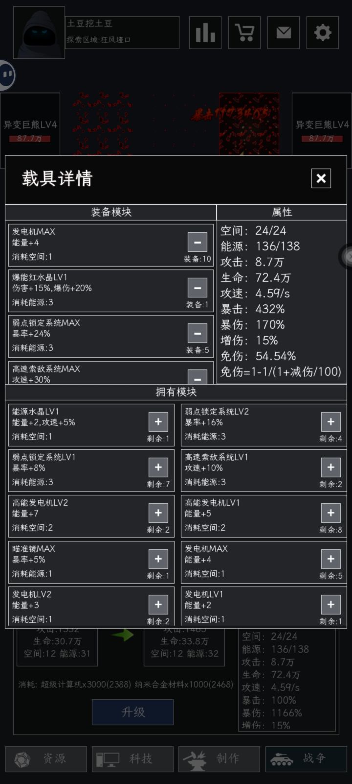 天天堆攻速和暴击能源,8.7万的攻击打出117万伤害,看到很多人还在使劲堆武器我就笑了