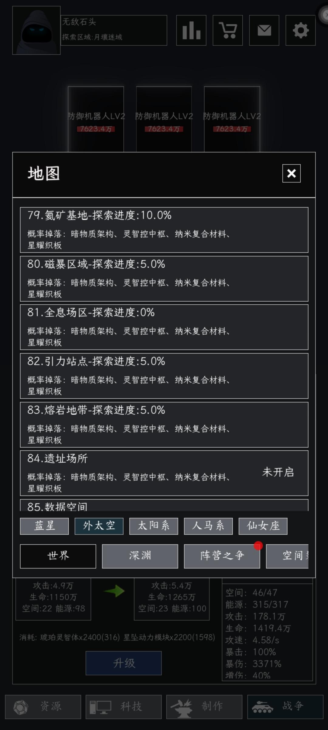 理论上一个武器空间和能源可以增加的攻速乘现在的攻击,大于武器装载后就是不装好,小于就是装好,自己一算就知道了,所以加攻速装置一定要先做,这玩意儿16分钟一个,三级144个,一个三级就38个小时,加30攻速比例不小了。#末日兵工厂放置战争