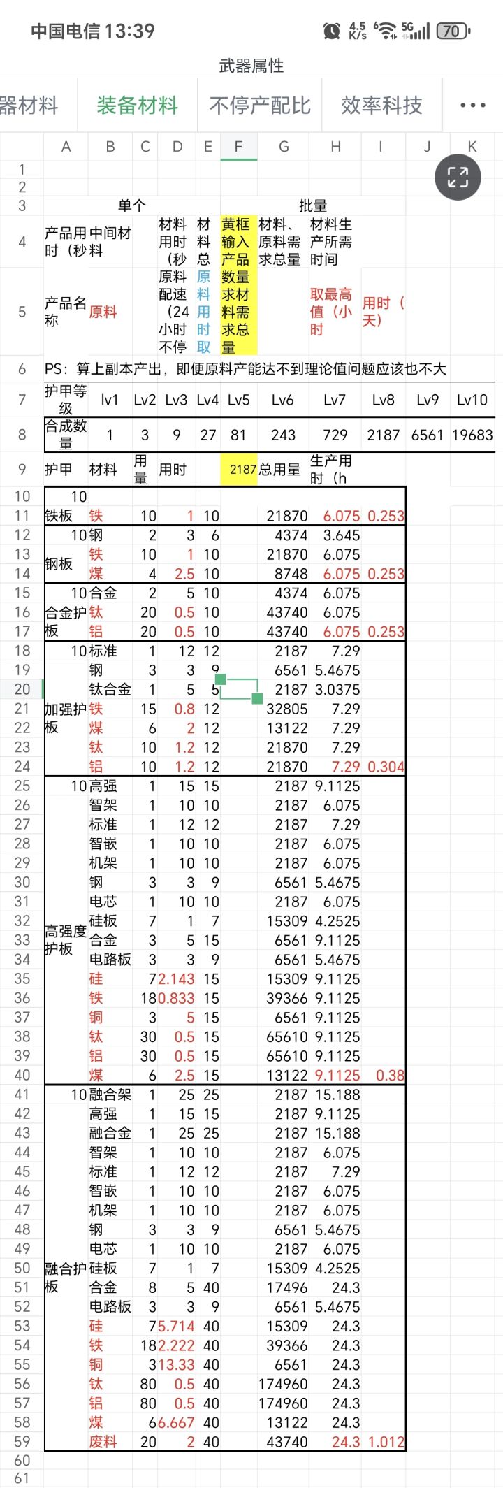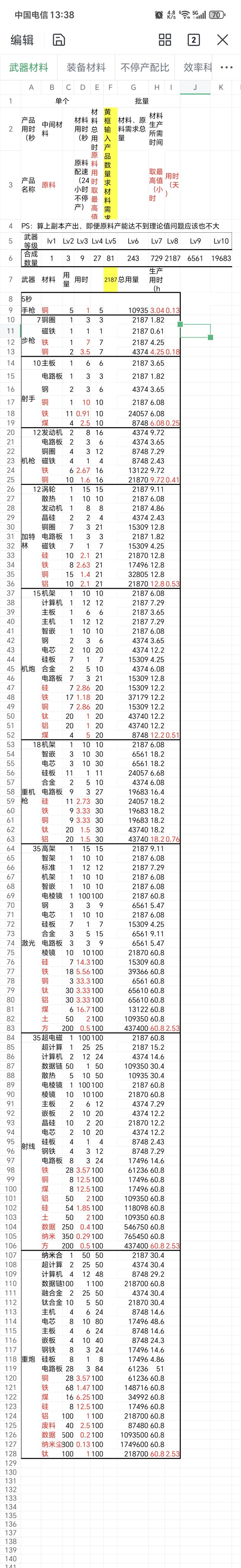 论坛发不了文件,上传到企鹅群了,游戏内点头像可加群。各插件不必急着合成更高级,视空间能源情况而定,充足的情况下2个lv2加成>1个lv3前期跳过手枪(不升太高够用就行)直接上步枪(可满级),步枪全局性价比最高,中间过渡一下上机炮或重机枪辅助插件的属性懒得搞了,因为我也没得;总得来说2级弱点可换下max瞄准镜,索敌要3级才行,发电机有点坑憋一天半才提升了一点